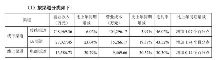 2025年上半年,燕京啤酒线上电商渠道实现营收约1.36亿元,同比增长30.79%,毛利率为30.30%,相比上年同期增加0.14个百分点。而线下渠道中,传统渠道同期营收约74.89亿元,同比增长6.02%,毛利率为46.02%;KA渠道同期则实现营收约2.7亿元,同比增长23.04%,毛利率为43.52%。